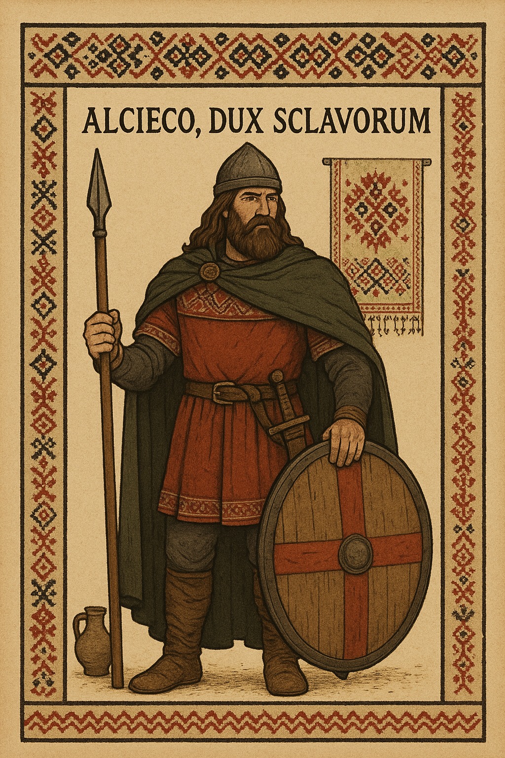 Ето го и въпросният откъс от летописа: „След като умрял Ламберт, синът на Гуидо Стари, последният оставил на синовете си Сполетум. След като и той се споминал, Гуидо Млади получил Сполетум и Камеринум, разположил се на лагер и сключил мир с агаряните в Сепинум, където някога бил настанен от Ромуалд КНЯЗЪТ НА СЛАВЯНИТЕ АЛЦИЕКО [Alcieco, dux Sclavorum], след като били дадени и взети заложници...”