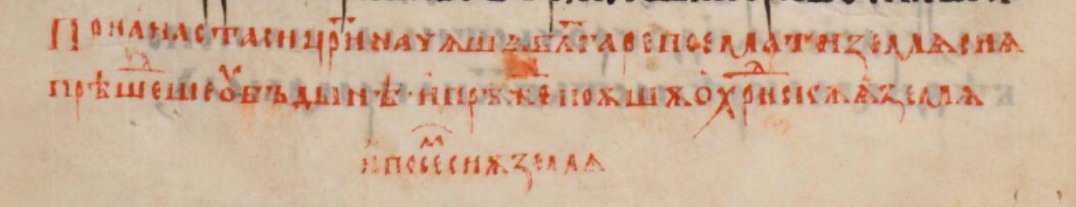 При а҆настаси цр҃и начѧшѧ бл҃гаре поемати ꙁемѧ сиѧ прѣшеⷣше ꙋ бъдынѣ · и҆ прѣжⷣе поѫшѫ о҆хриⷣскѫѧ ꙁемѧ и҆ посеⷨ҇ сиѫ ꙁемѧ